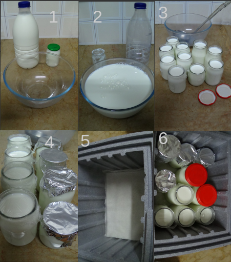 *Si no disponéis de una caja de porexpan o nevera de camping, también es posible realizar los yogures cubriéndolos con papel de diario y ponerlos cerca de un lugar caliento, como podría ser un radiador.
