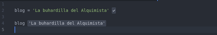 Una señal de confirmación aparecerá al final de la linea, indicando que esta ha sido reproducida correctamente. Si en una linea se hace la llamada a una variable el valor de la misma sera impresa por pantalla.